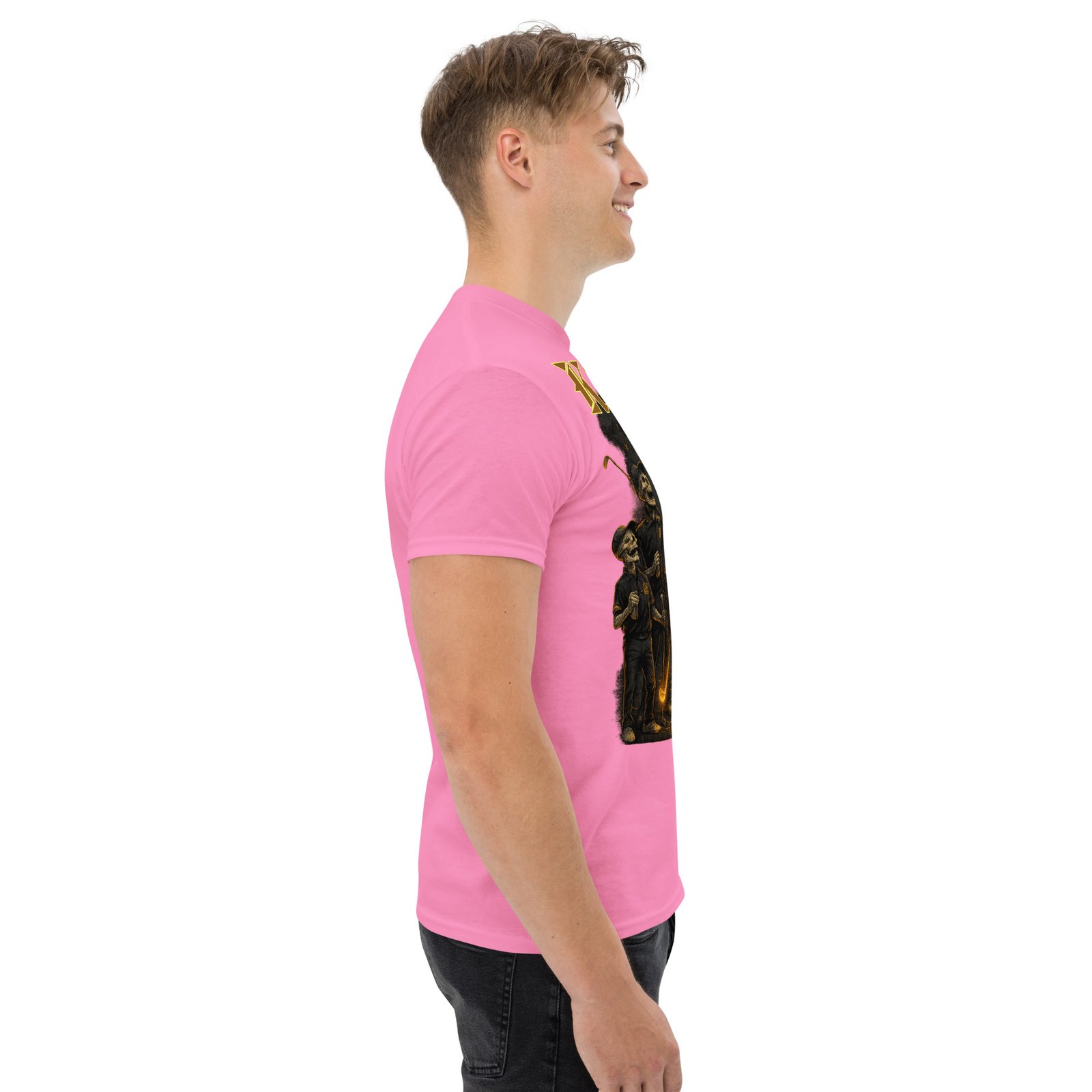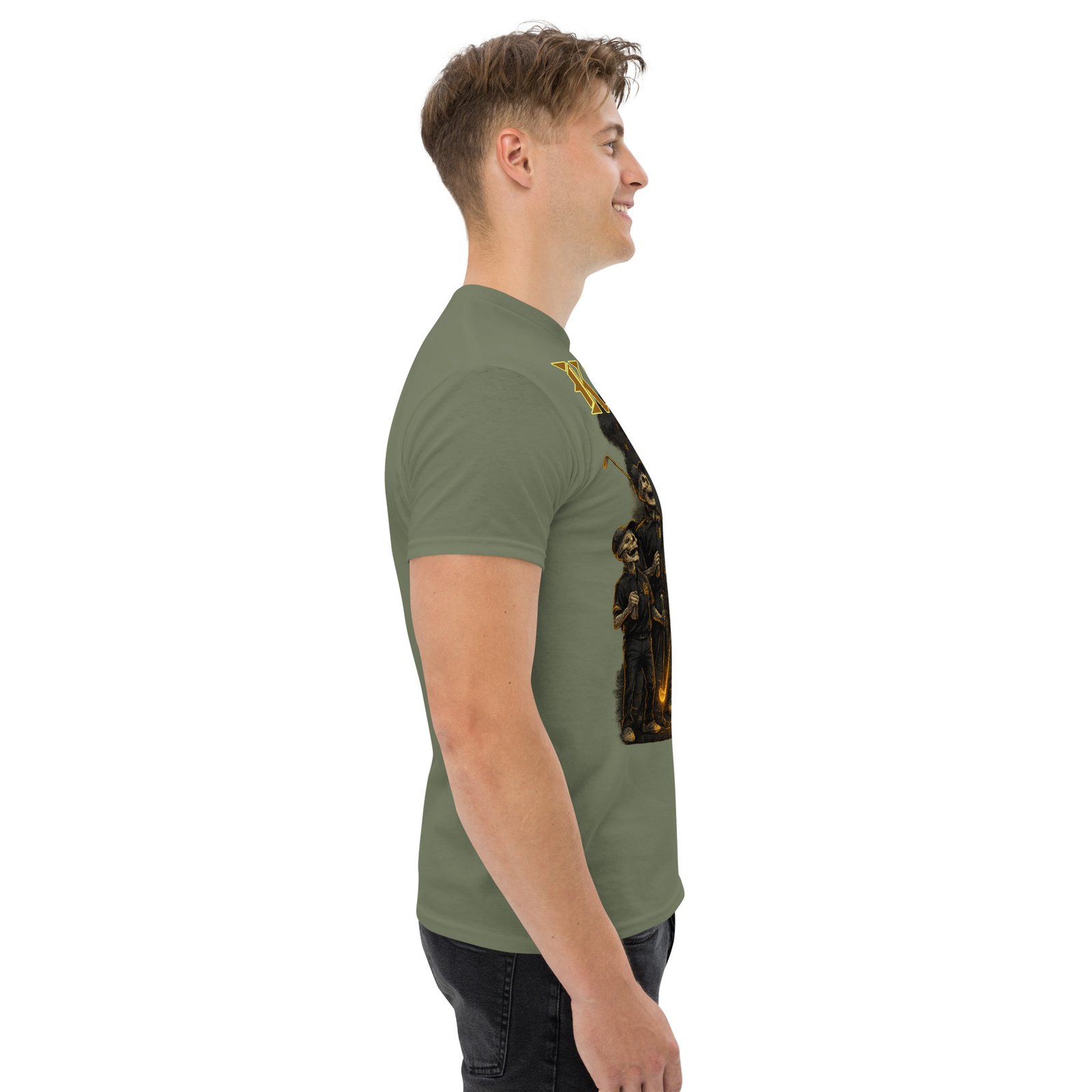 Perfect for streetwear layers, this tee holds its shape and highlights the artwork beautifully. Available in several bold shirt colors including army green, maroon, and black — each pairing differently with the golden fiery tones of the graphic.